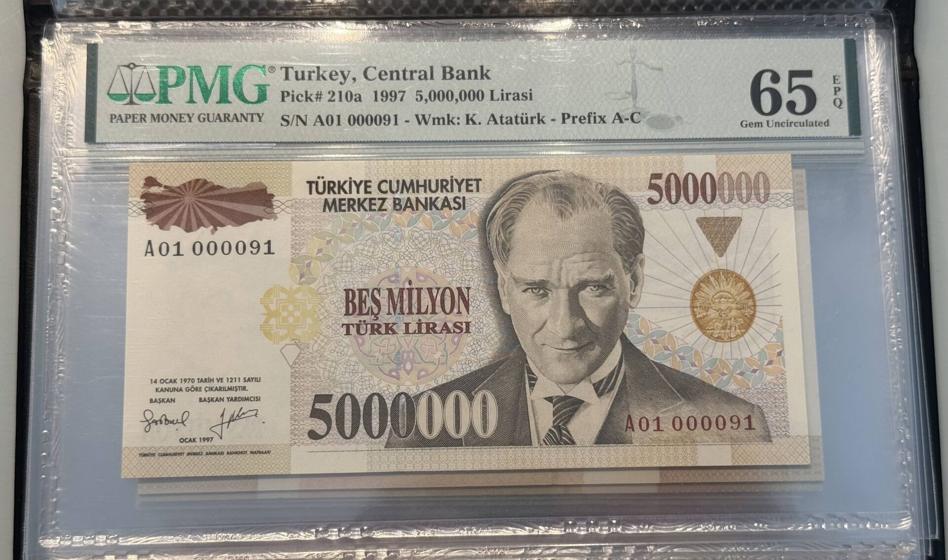 7. Ems 5.000.000 TL, A01 000091, PMG 65 Epq, ÇİL